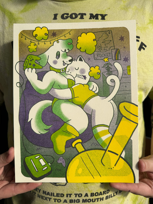 "Sapphic Smokers" Risograph Print by Frankee Graves