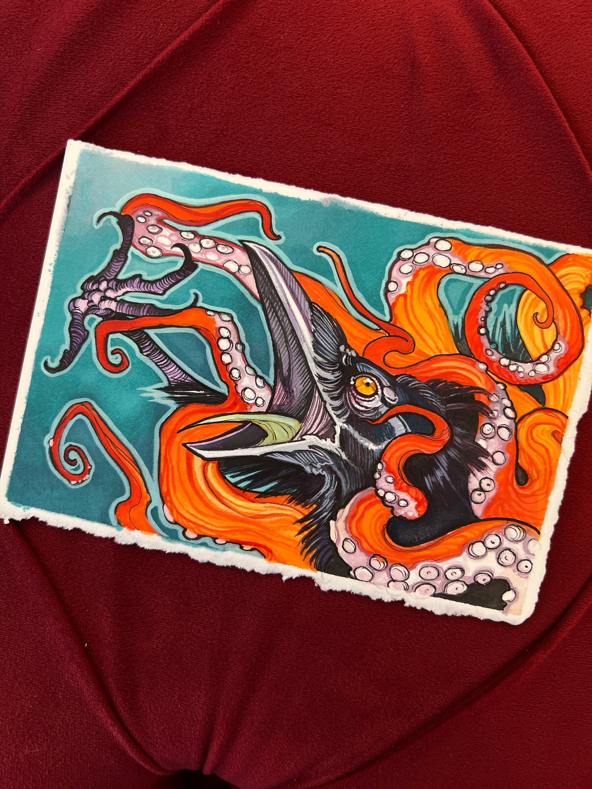 Marker, pen and acrylic on Arches cold press watercolor paper