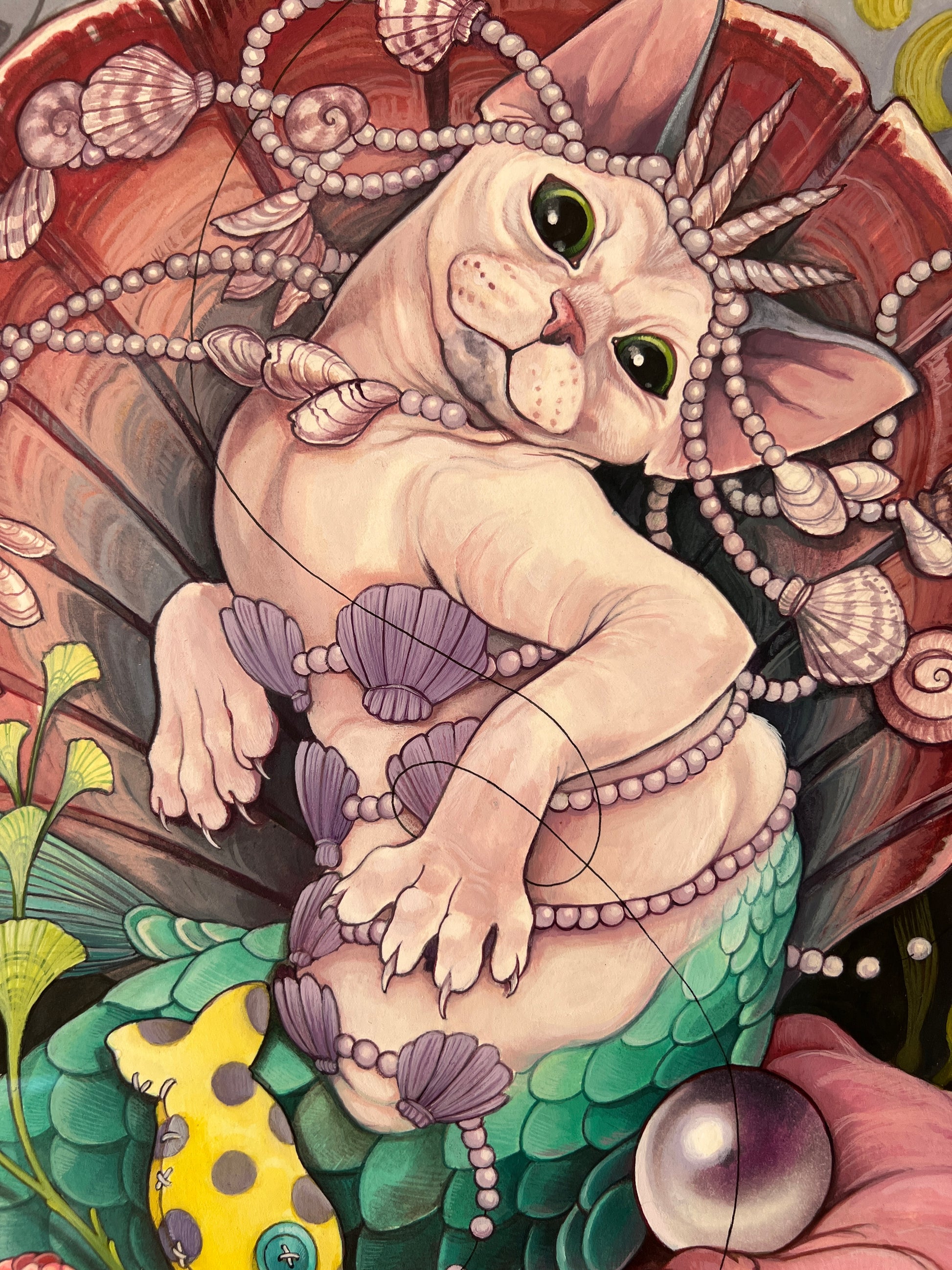 "The Purrfect Catch" Original Framed Painting by Teresa Sharpe
